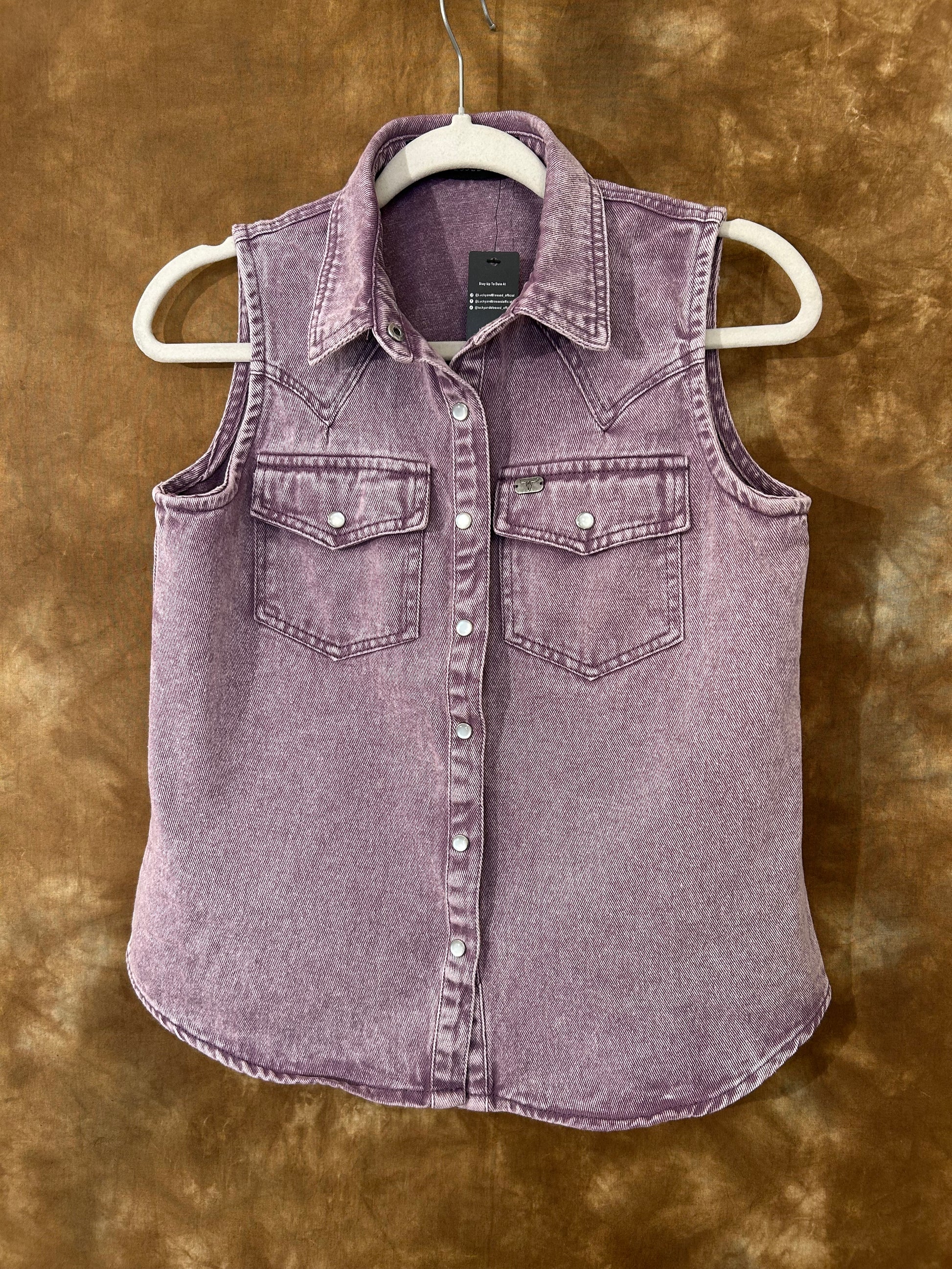 Designed with a breathable, denim-look fabric, this top gives you that classic western feel without the weightâkeeping you cool, comfortable, and ready for whatever the day brings. The bold western yoke adds that punchy cowgirl edge, while the rich tulip/Arizona sunset purple hue brings a vibrant, head-turning twist you wonât find just anywhere.