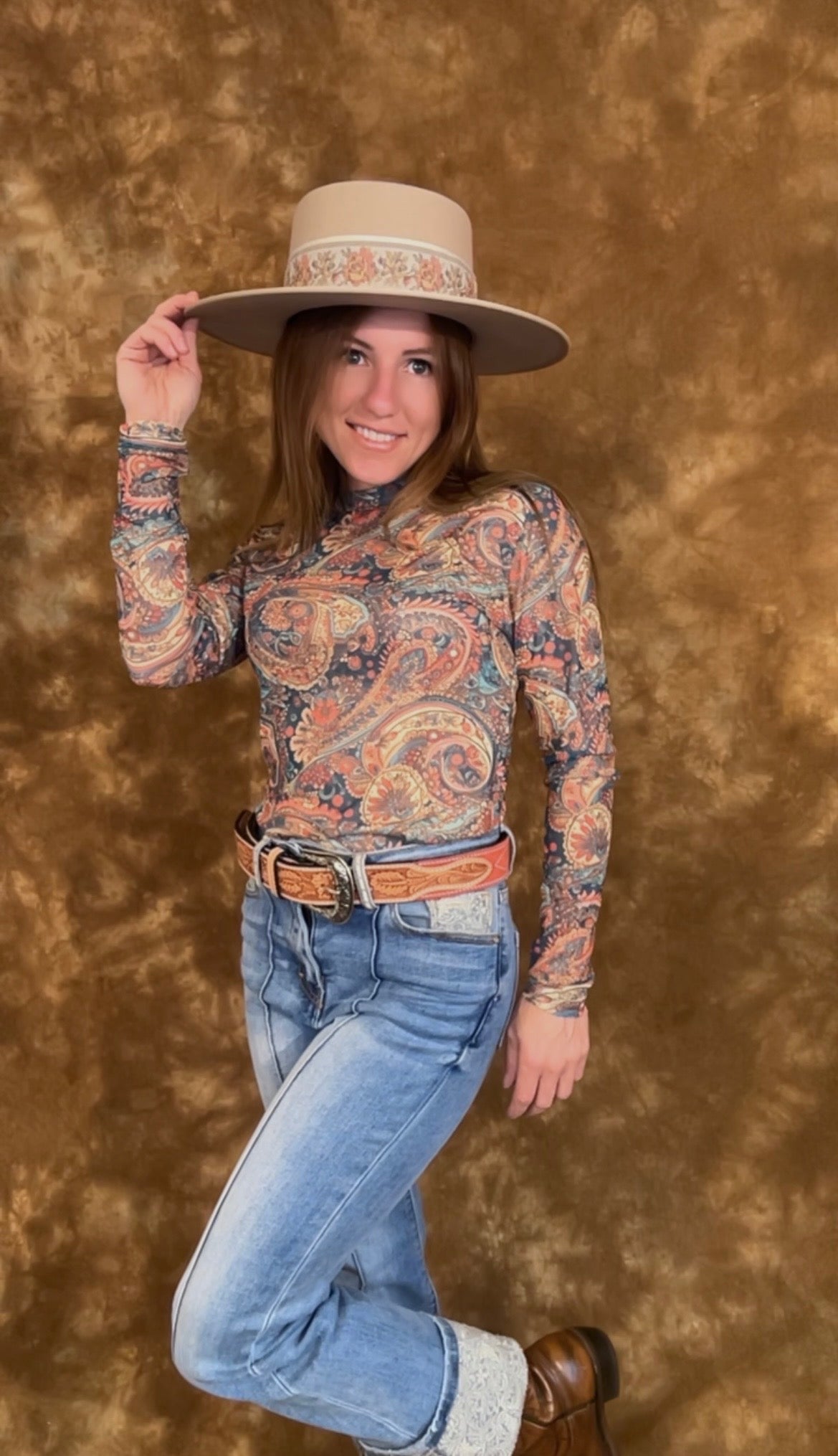 Whether you're hauling hay, heading to the fair, or two-stepping under the neon lights, this paisley mesh top brings just the right mix of sass and western soul.